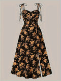 Plus Size Floral A-Line Slit Maxi Dress – Elegant High Street Style