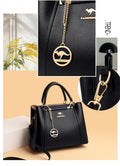 Crafted from premium microfiber synthetic leather with a smooth polyester lining, this bag offers a luxurious feel while remaining lightweight and durable. The letter detailing, sequins, and signature kangaroo logo with pendant add a fashionable statement touch. With multiple interior compartments, it keeps your essentials neatly organized for daily use, work, shopping, or travel.