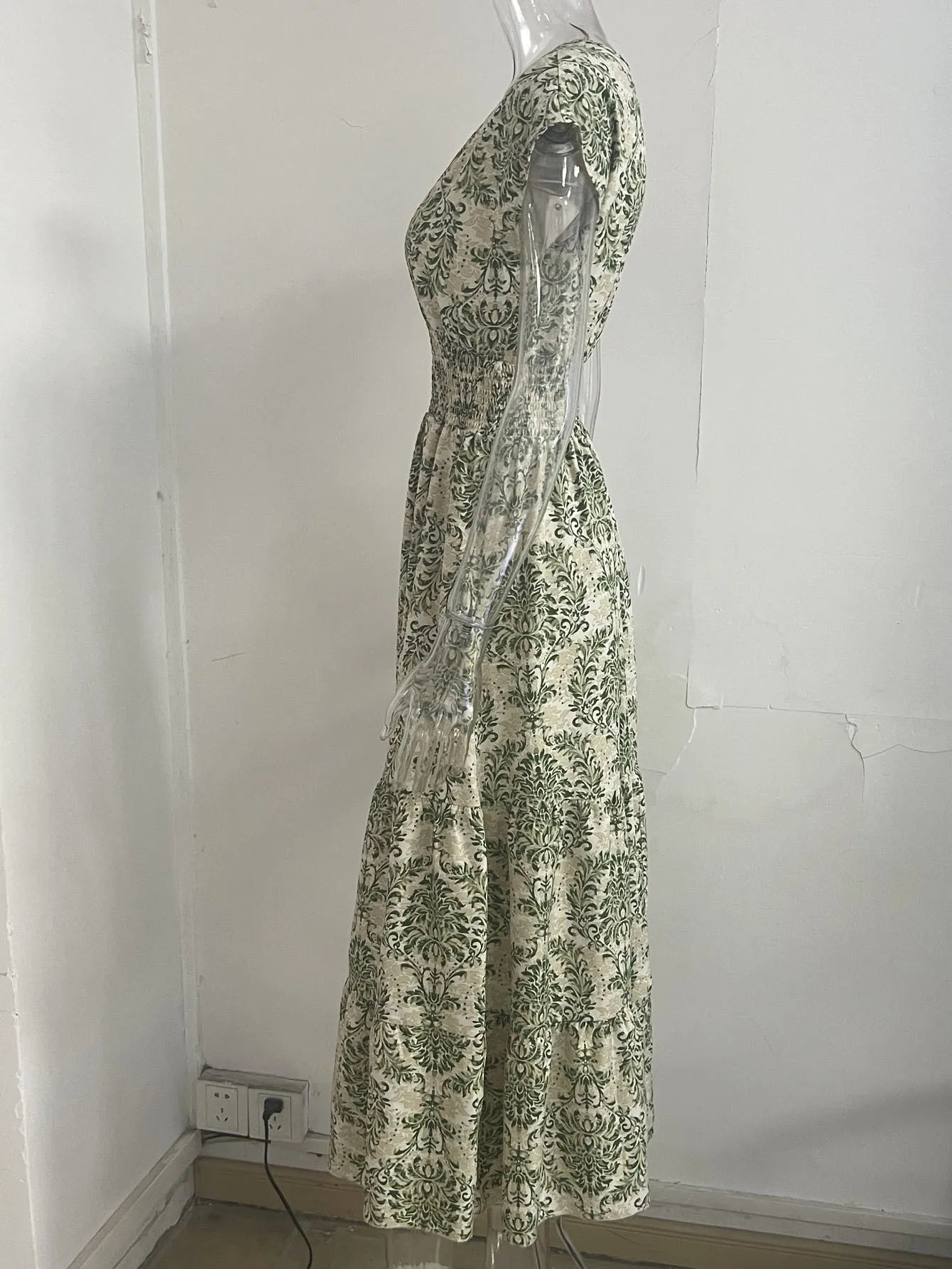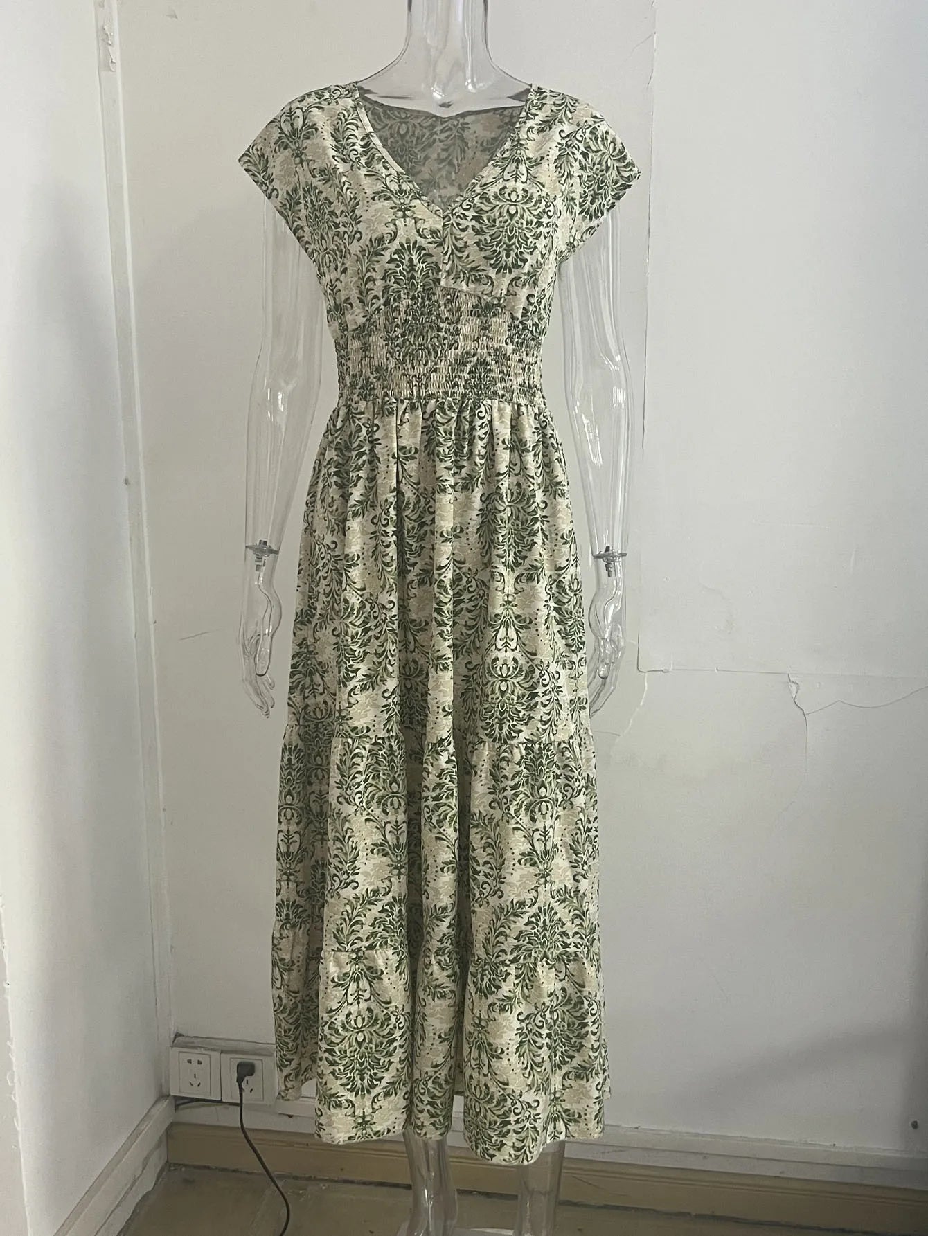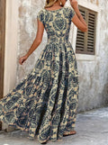 Vintage Printed V-Neck Short Sleeve Maxi Dress – Women’s Summer 2025