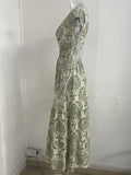 Vintage Printed V-Neck Short Sleeve Maxi Dress