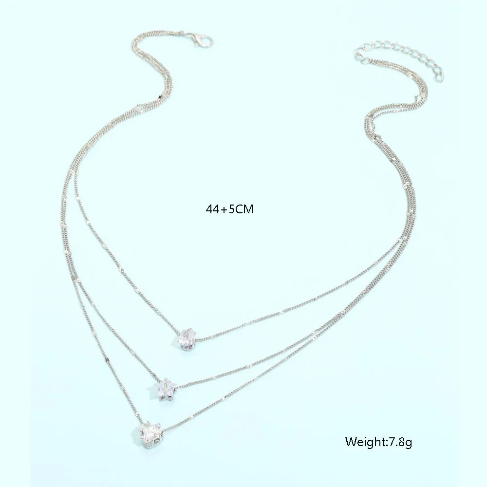 Crystal Heart & Star Layered Necklace Set