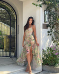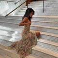 The CHNMR Printed Pleated Maxi Dress is a bold and sensual summer piece designed to flatter the feminine silhouette. Featuring a slash neckline, delicate spaghetti straps, and a pleated flow, this dress enhances curves while maintaining elegance and movement.
