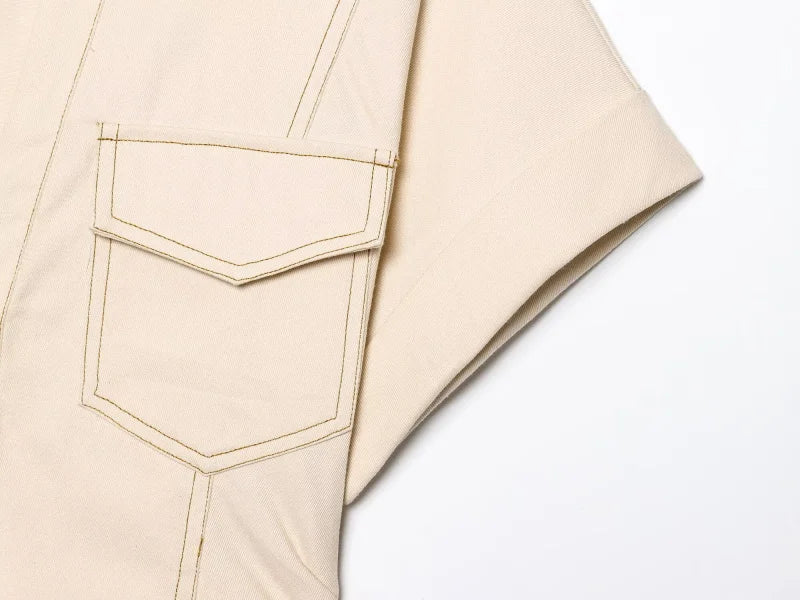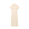 Effortlessly chic and timeless, this V-neck pleated denim midi dress blends casual elegance with everyday comfort. Designed with a structured straight silhouette, turn-down collar, and single-breasted front, it delivers a refined yet relaxed look perfect for warm-weather styling.