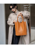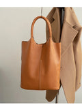 Its soft bucket shape and open-top design make it easy to access essentials, while the minimalist solid-color finish ensures timeless versatility across all seasons.