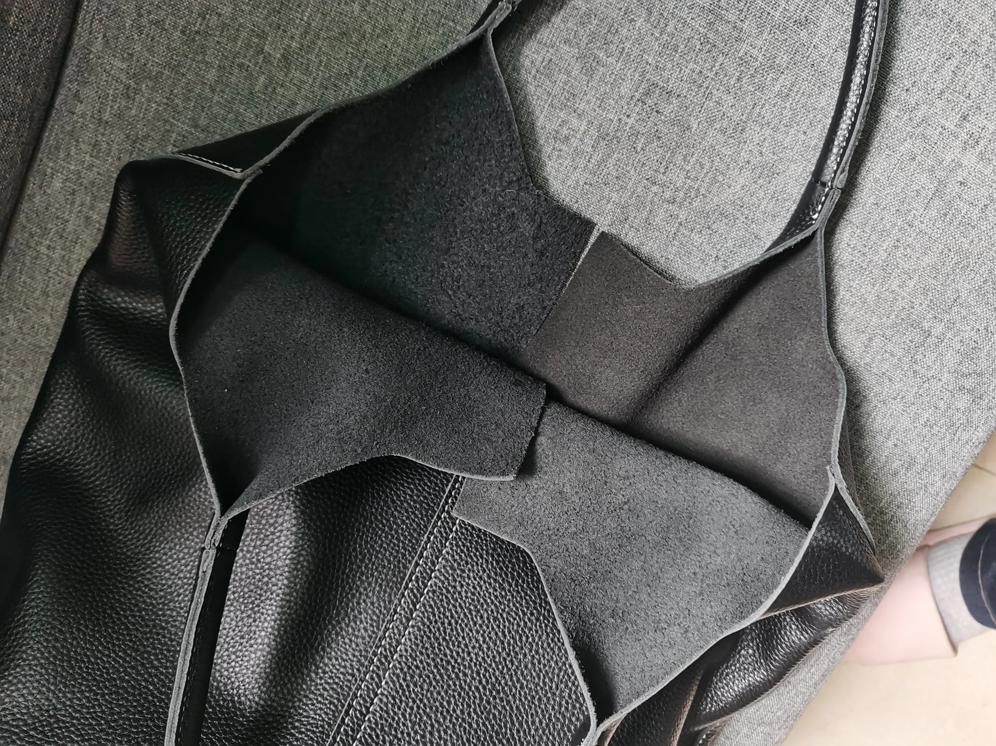 这款包包所有颜色的内部都是漏皮底,例如:黑色展示