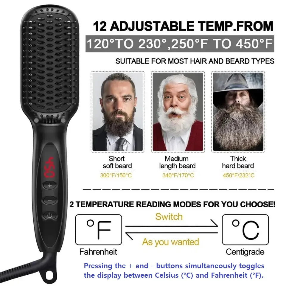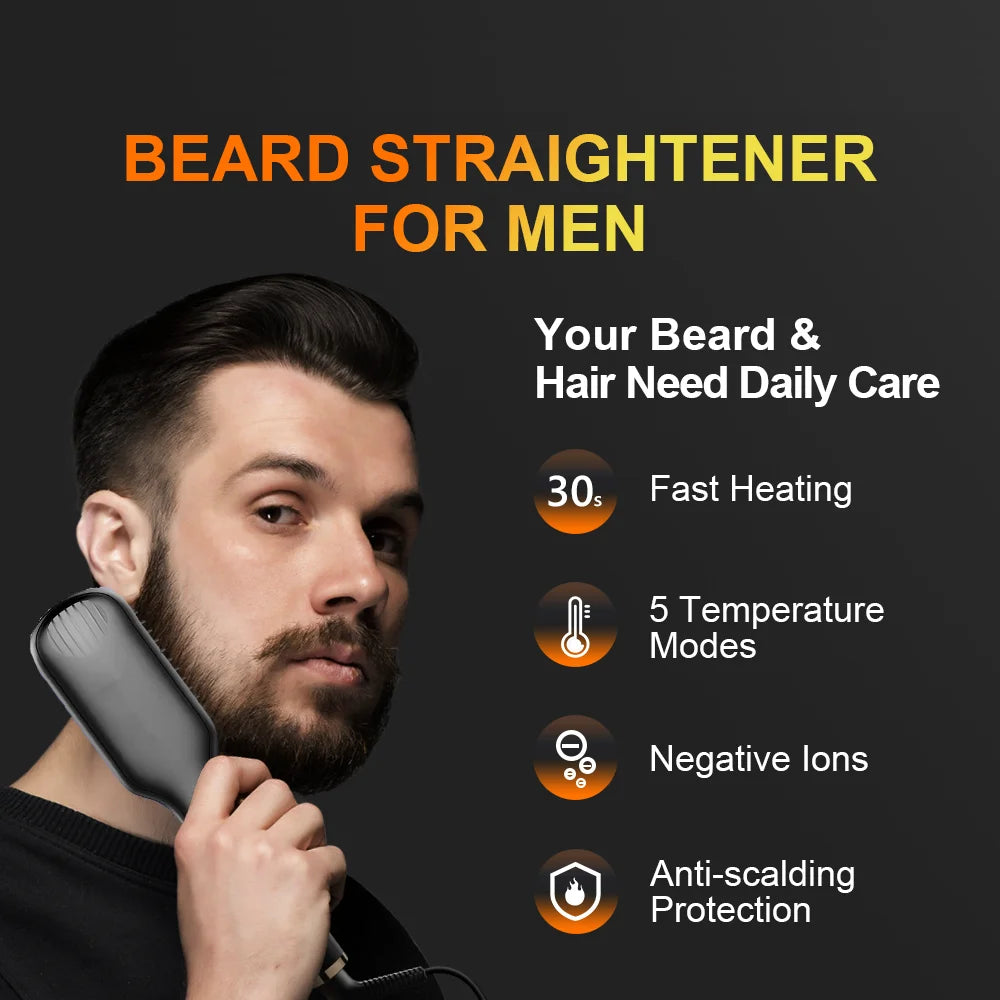 The Fastyle Hair & Beard Straightening Brush heats up in seconds and delivers controlled heat to straighten hair or beard quickly — without pulling, burning, or damaging strands.
