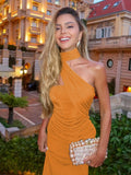 Halter Backless Ruched Maxi Bodycon Dress
