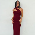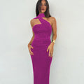 Turn heads with this halter backless maxi dress, designed to highlight your silhouette with a sleek, feminine fit. Featuring ruched detailing, a body-hugging slim cut, and an ankle-length design, this dress delivers effortless elegance with a modern, casual edge.