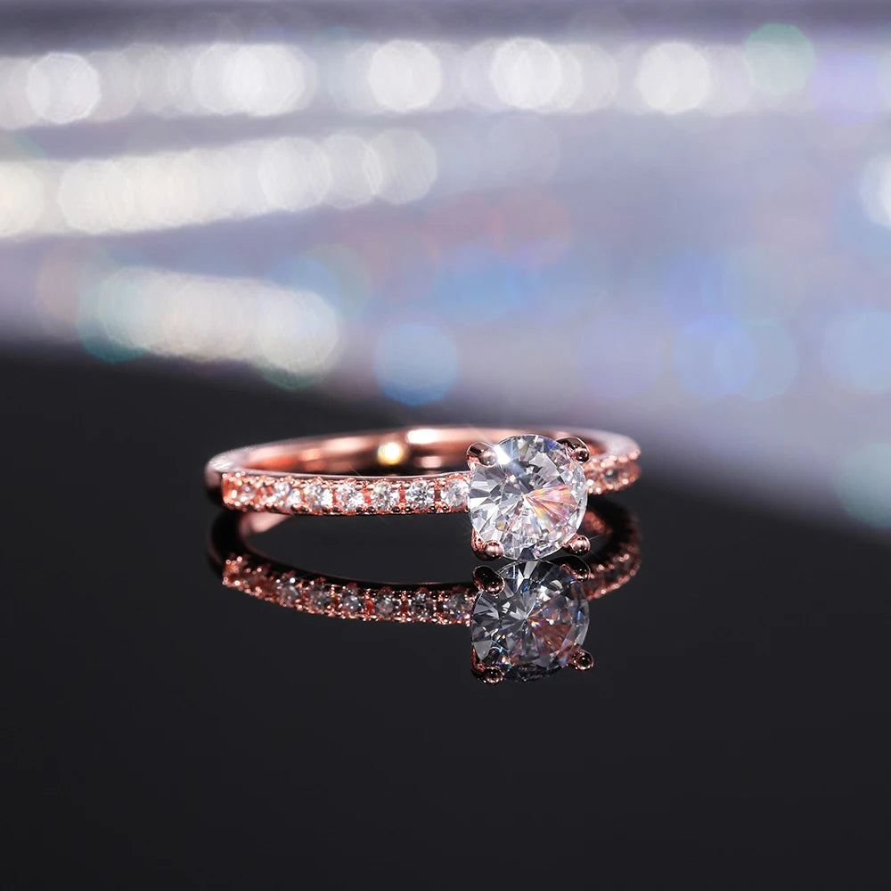 A modern statement ring designed to elevate your most important moments. This HUITAN geometric wedding band features a refined prong-set cubic zirconia that delivers brilliance without being overdone — perfect for women who want elegance with a contemporary edge.