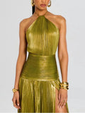 This Elegant Halter Neck Evening Dress is designed for women who want to make a statement at special occasions. Featuring a floor-length A-line silhouette, refined folded detailing, and a flattering empire waist, this dress delivers timeless luxury with a modern, sexy edge.