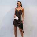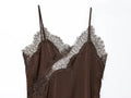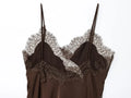Seductive, elegant, and effortlessly feminine, the MUJER Satin Lace Backless Mini Dress is designed to highlight your silhouette with a sleek straight cut and delicate draped details. Featuring a deep V-neckline, spaghetti straps, and a sensual open-back design, this mini dress is perfect for warm nights and special occasions.