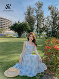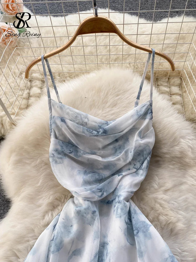 SINGREINY Floral Backless Ruched Maxi Dress – Summer Chiffon Elegance
