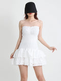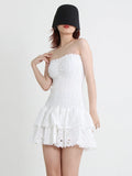 Bold, feminine, and designed to turn heads, the TWOTWINSTYLE Strapless Embroidered Mini Dress delivers a perfect balance of sexy and chic. Featuring a strapless chest-wrapping design, A-line silhouette, and delicate embroidery, this mini dress enhances your curves while offering comfort with its medium stretch fabric.